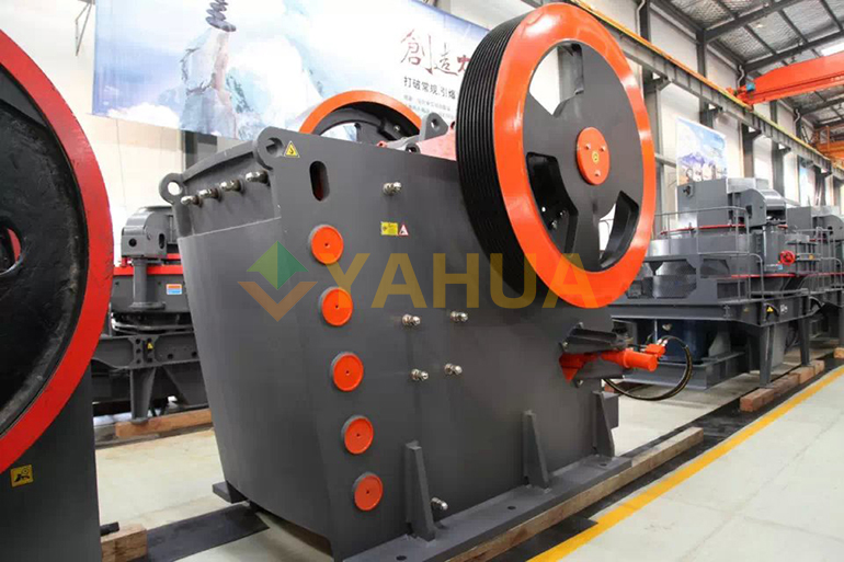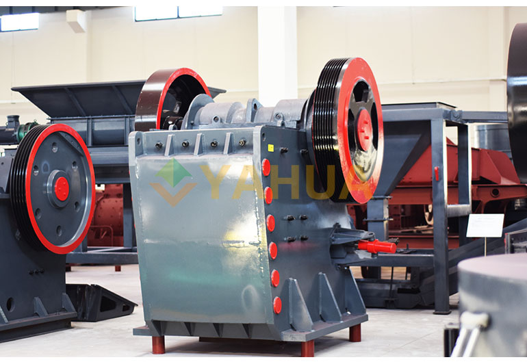 European type jaw crusher is mainly composed of frame part, eccentric shaft rotating part, crushing chamber working part, safety device, discharge opening adjustment device, etc.